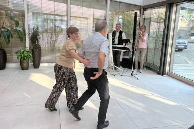 Der pensionierte Musiker Sepp Eigenmann, der auf über 50 Jahre Bühnenerfahrung zurückblickt, versteht es, Menschen mit seiner Musik zu berühren. Gemeinsam mit Regula Keller brachte er nicht nur musikalische Unterhaltung, sondern auch Bewegung, Begegnung und viele strahlende Gesichter in den Alltag der Gäste.