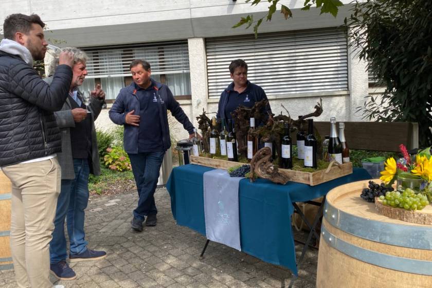 Mit einem Gottesdienst von Pfarrer Frank Sachweh begann das stimmungsvolle Winzerfest am Sonntagvormittag. Im Verlaufe des Tages gesellten sich immer mehr Gäste auf den Dorfplatz und probierten die verschiedenen kulinarischen Köstlichkeiten des Café Dorfplatz.