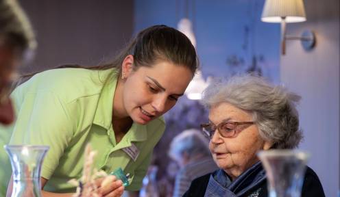 Auf unserer geschützten Abteilung für Menschen mit Demenz betreuen wir 13 Menschen in dieser herausfordernden Lebenslage. Wir wollen die Individualität unserer Bewohner bewahren und möchten daher Biografie und Validation in den Mittelpunkt unserer täglichen Arbeit rücken. Unter Einbezug der Angehörigen unterstützen wir unsere Bewohner bei der Bewältigung und Gestaltung des Lebensalltags.